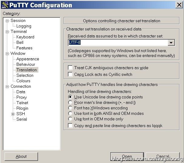 同樣在你連上服務(wù)器后,點(diǎn)左上角小圖標(biāo),選擇Change Settings,然后點(diǎn)Translation,在Received data assumed to be in which characher set下,選擇UTF-8