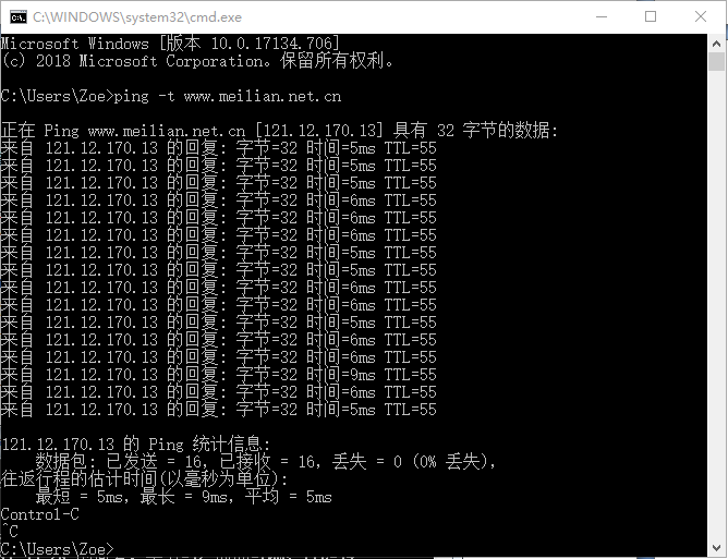 美國服務(wù)器Ping命令共有12個可選參數(shù),這里僅介紹常用的一些參數(shù).1)-t 對目標(biāo)持續(xù)不斷地發(fā)送ICMP數(shù)據(jù)包,按Ctrl+C組合鍵停止。